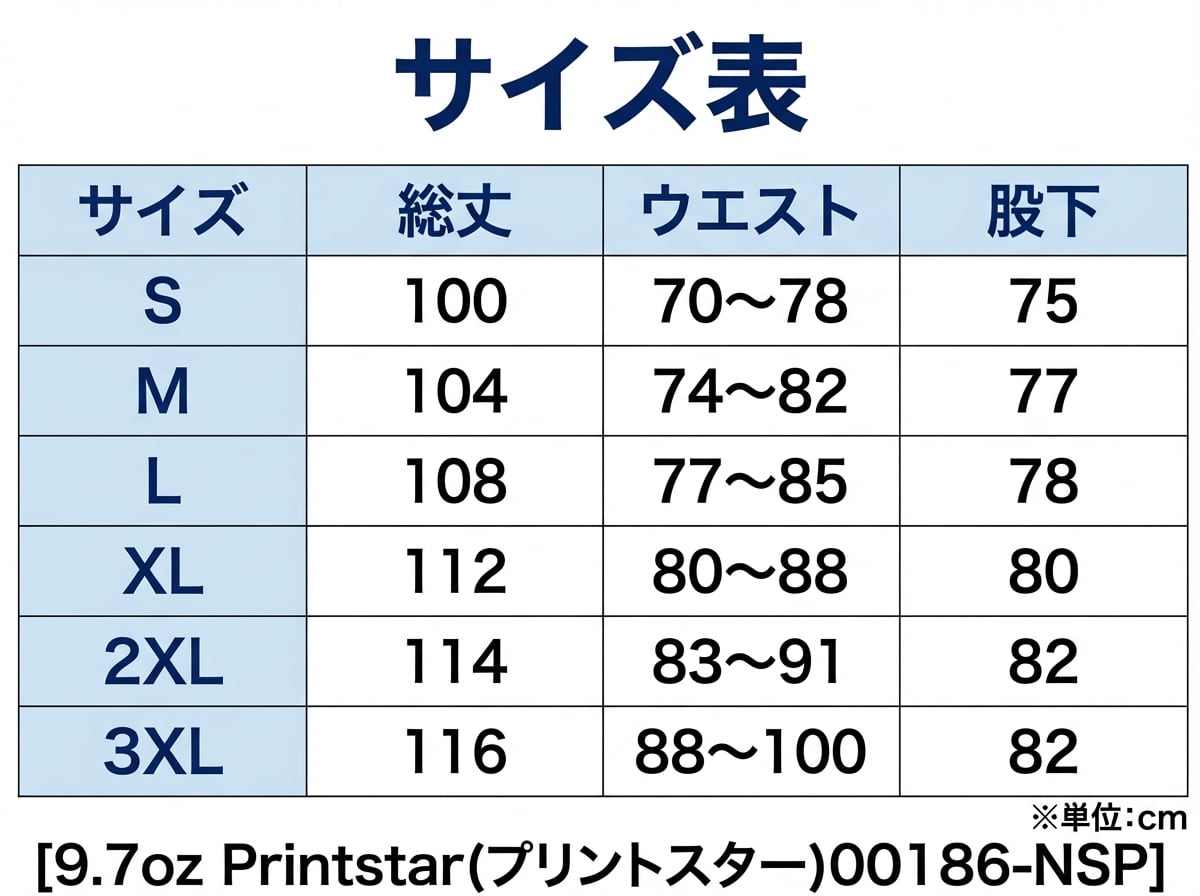 スウェットパンツのボディは9.7oz Printstar(プリントスター)00186-NSPです。