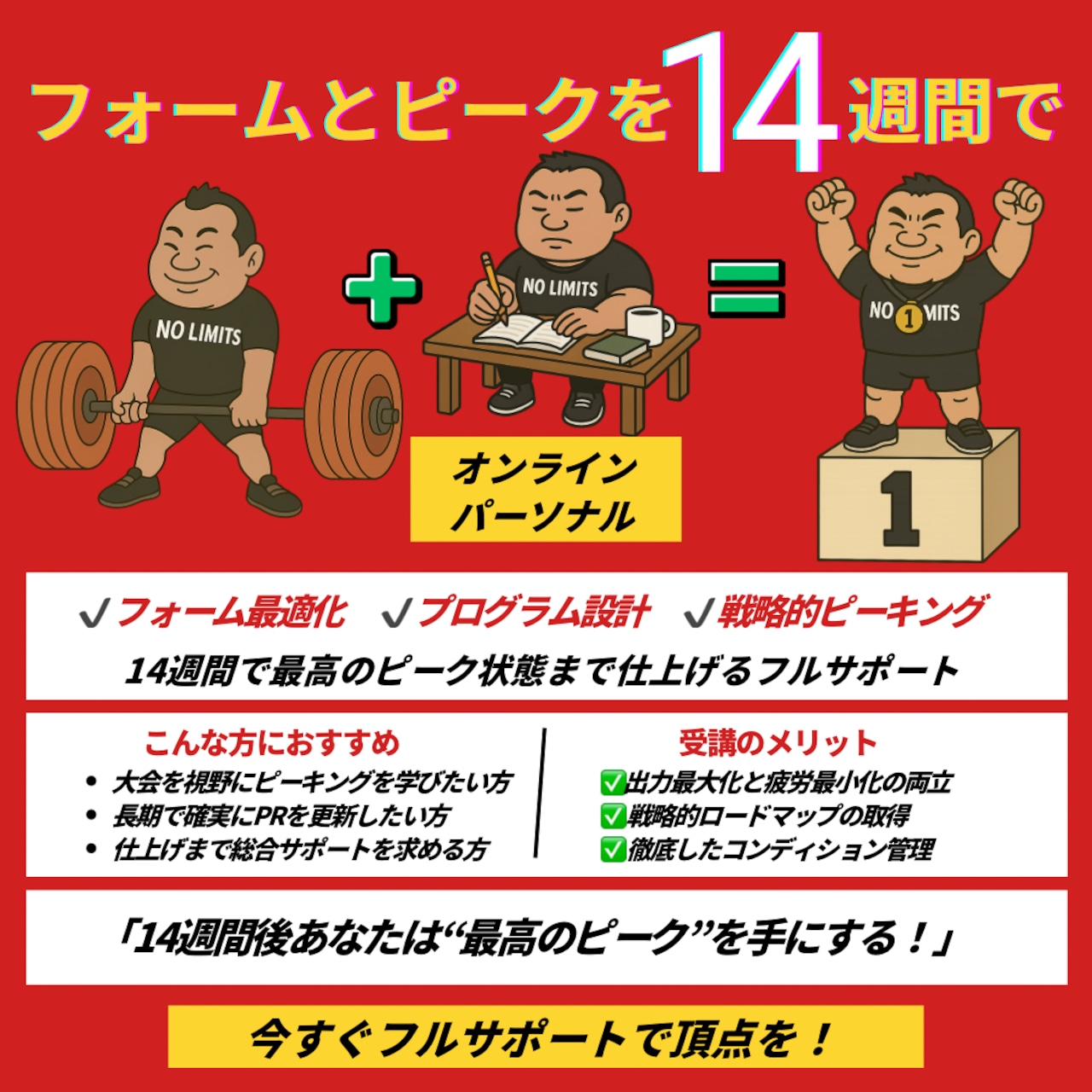 大会対応も視野に入れた フォーム・プログラム・ピーキング戦略フルサポート型オンラインパーソナル。